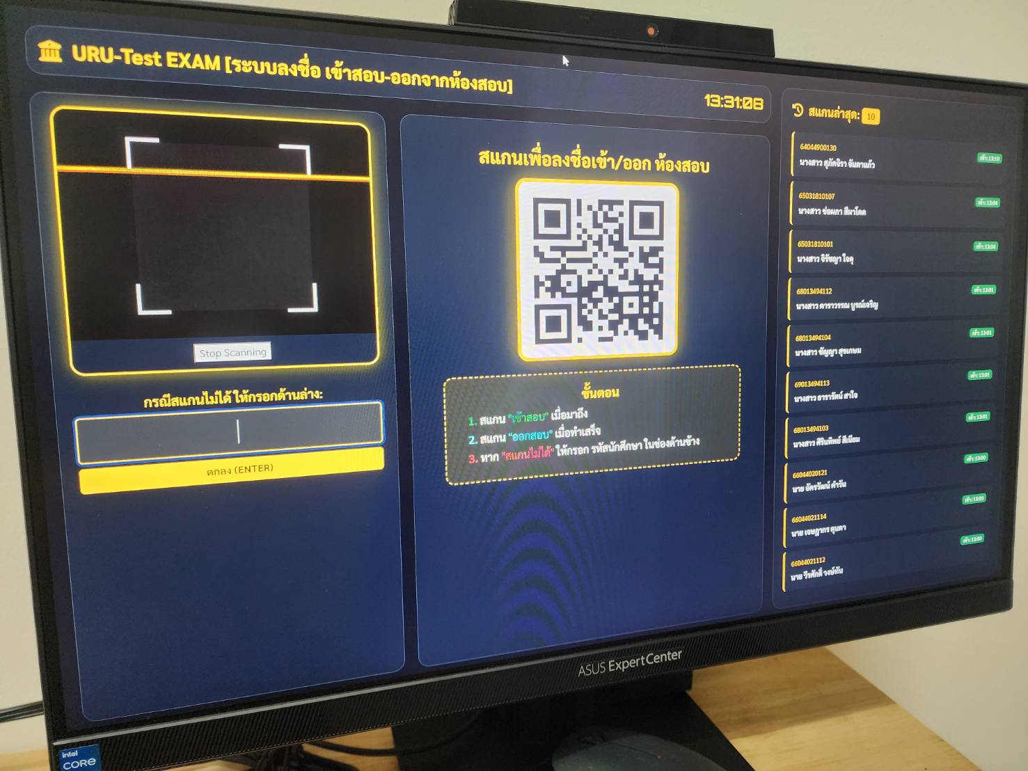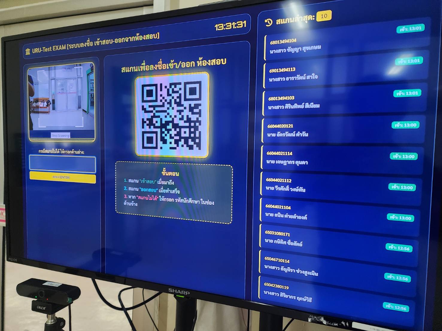 โดยใช้ระบบลงชื่อเข้าห้องสอบ ผ่าน Qr code เพื่อความสะดวกและลดการใช้ทรัพยากร ซึ่งพัฒนาโดย งานวิเทศสัมพันธ์และพัฒนาภาษาต่างประเทศ กองบริการการศึกษา มหาวิทยาลัยราชภัฏอุตรดิตถ์